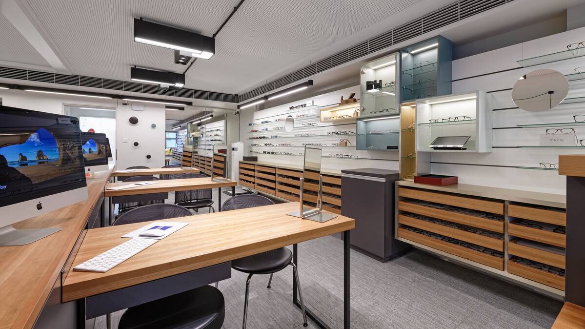 Obwohl die beiden Inhaber unterschiedliche Geschmäcker haben, gefiel der erste Entwurf von Architektin Florianne Pittet von der Glaeser Projekt AG sofort. Besonders wichtig war den Inhabern, dass die Räumlichkeiten Gemütlichkeit ausstrahlen und einladend wirken. Auf drei Etagen bietet das neu bezogene Ladenlokal Brillen, Kontaktlinsen, Fotografie und optische Instrumente.
