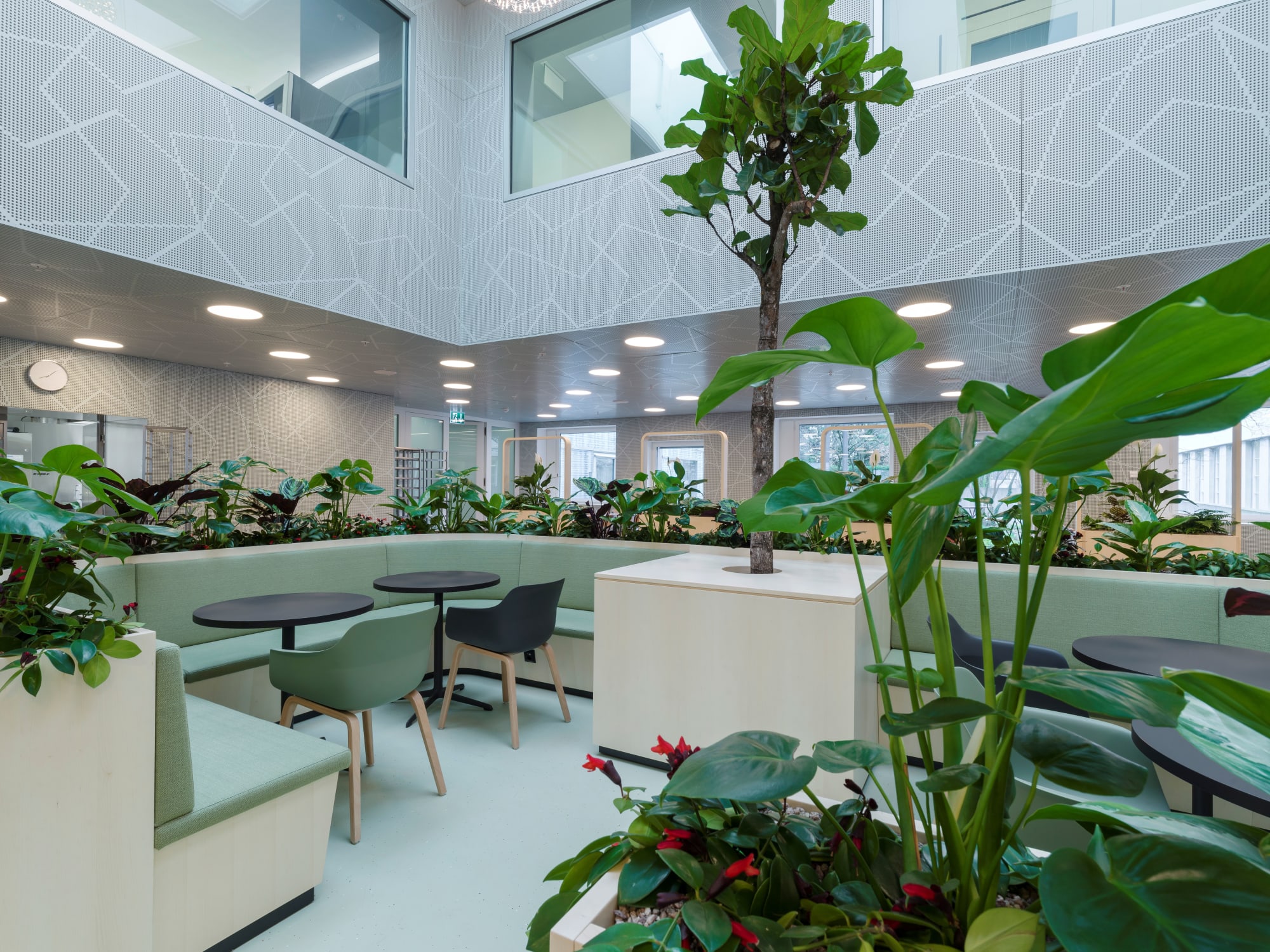 Um den sich wandelnden Bedürfnissen der Mitarbeitenden gerecht zu werden, beschloss Axpo einen Umbau des Personalrestaurants beim Hauptsitz in Baden. Dank einem vielfältigen Konzept entstand ein Marktplatz für Begegnung, Vernetzung und Austausch. Viel Grün und verschiedene Bereiche decken unterschiedliche Bedürfnisse und machen aus dem ehemals klassischen Speisesaal eine Erholungsoase inmitten des Hauptsitzes der grössten Schweizer Energieproduzentin. GLAESER realisierte beim Projekt Sitznischen, Sitzbänke, fahrbare Raumtrenner und Wandverkleidungen.